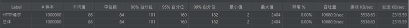 对于普通页面的数据获取,服务器消耗较低,经过 10000 并发的测试,一共 1000000 次请求,数据全部获取成功,没有失败的结果。